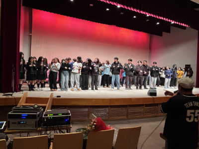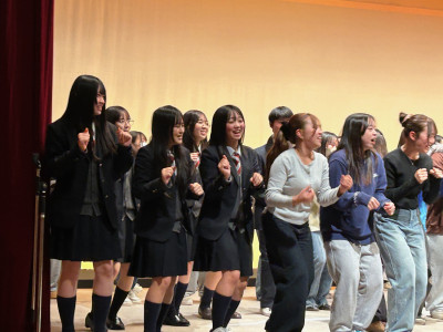 公演の最後には、谷口先生への御礼として、福島学院大学の学生さんたちに混ざり本校生徒もステージ上でダンスを披露しました。